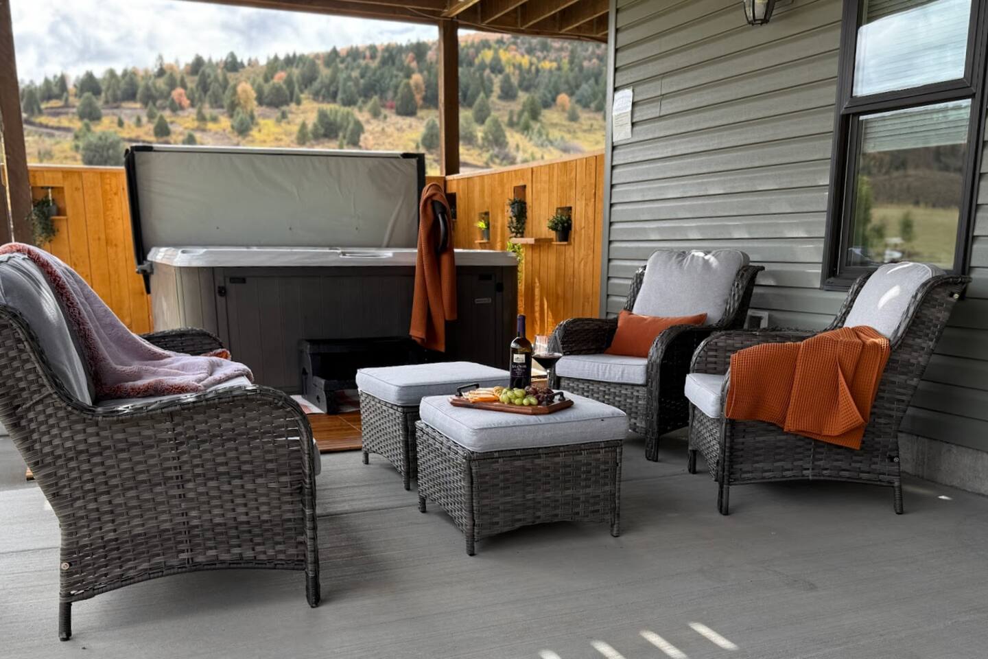 "The best and only place I will stay at in Lava Hot Springs! Beautiful views." ⭐⭐⭐⭐⭐Carter February 2025 Please ensure all furniture and household goods are moved back to their original position. Our team does not have manpower to move furniture. If you have moved it, please be considerate and move it back. If we have to move furniture that is out of place, there will be a $500 fee. Use of the hot tub, river, and sledding hills are at your own risk.